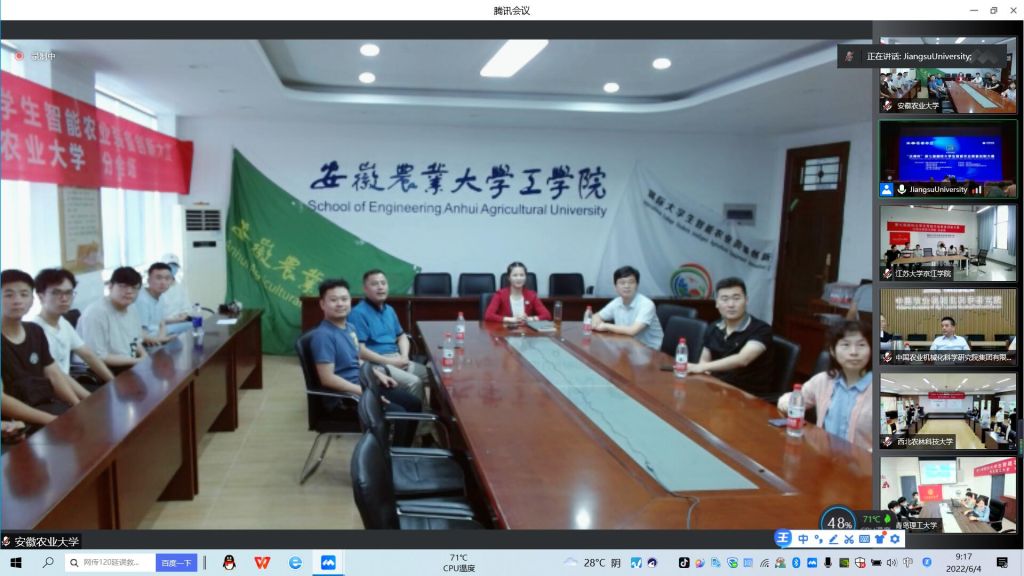 中国工程院院士罗锡文、陈学庚、赵春江,中国农业机械学会理事长刘小虎,中国农业工程学会常务副理事长朱明,江苏大学党委书记袁寿其、校长颜晓红等参加大赛开幕式。国际农业与生物系统工程学会(CIGR)秘书长Fedro S.Zazueta教授视频致辞。我校工学院党委书记任琪作为参赛单位代表以线上方式在开幕式上互动致辞。