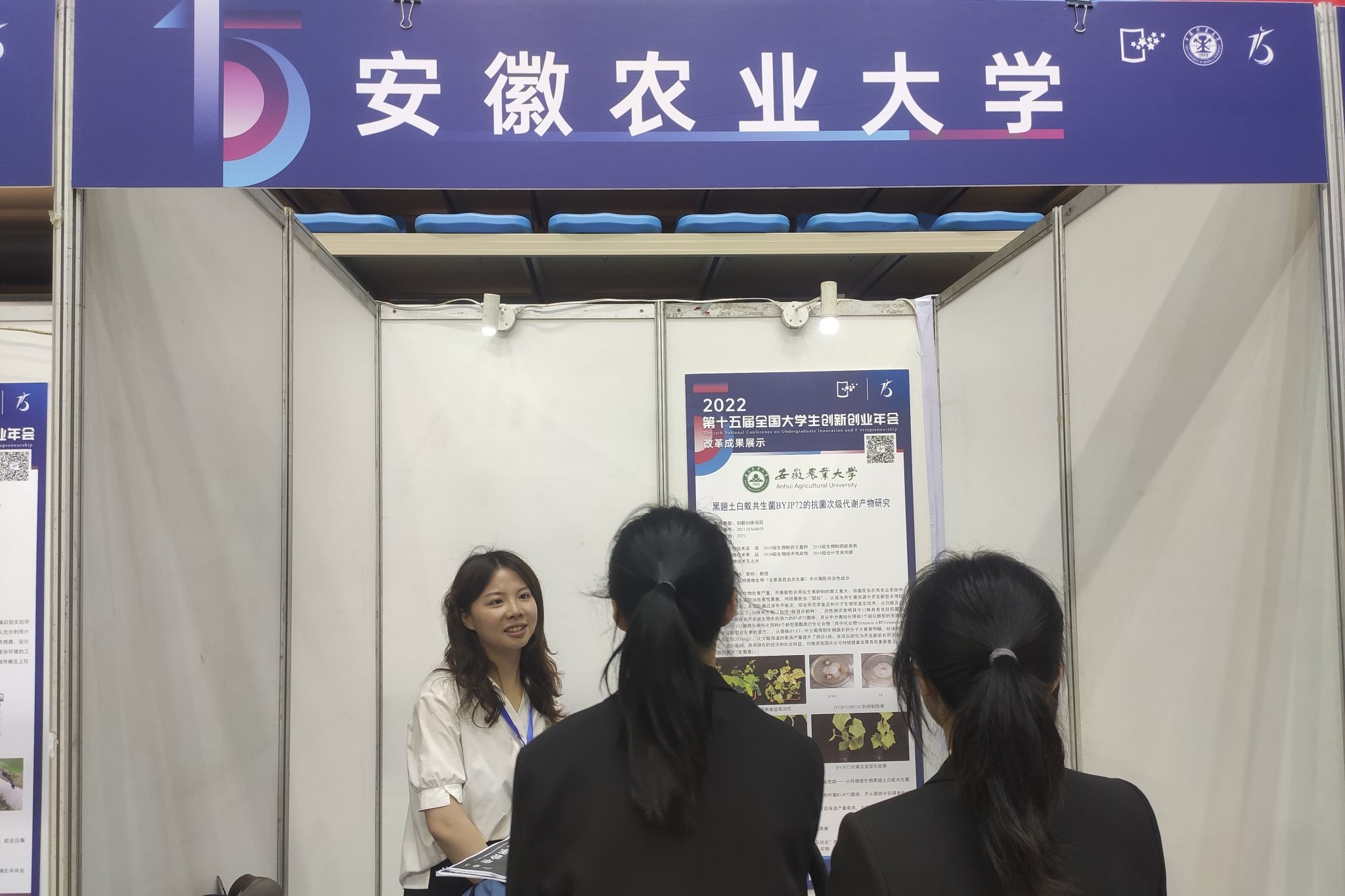 本网讯 5月13日,第十五届全国大学生创新创业年会在中国矿业大学南湖校区隆重召开。本届年会共收到部属高校和地方教育主管部门推荐项目872项,经过相关学科专家初评、“国创计划”专家工作组复选,遴选出参加第十五届全国大学生创新创业年会的学术论文195篇,改革成果展示项目243项、创业推介项目70项,共计508项。我校生命科学学院吴菲同学主持的大创项目“黑翅土白蚁共生菌 BYJP72 的抗菌次级代谢产物研究”入选改革成果展示项目,是我校在本届年会唯一入选的项目。