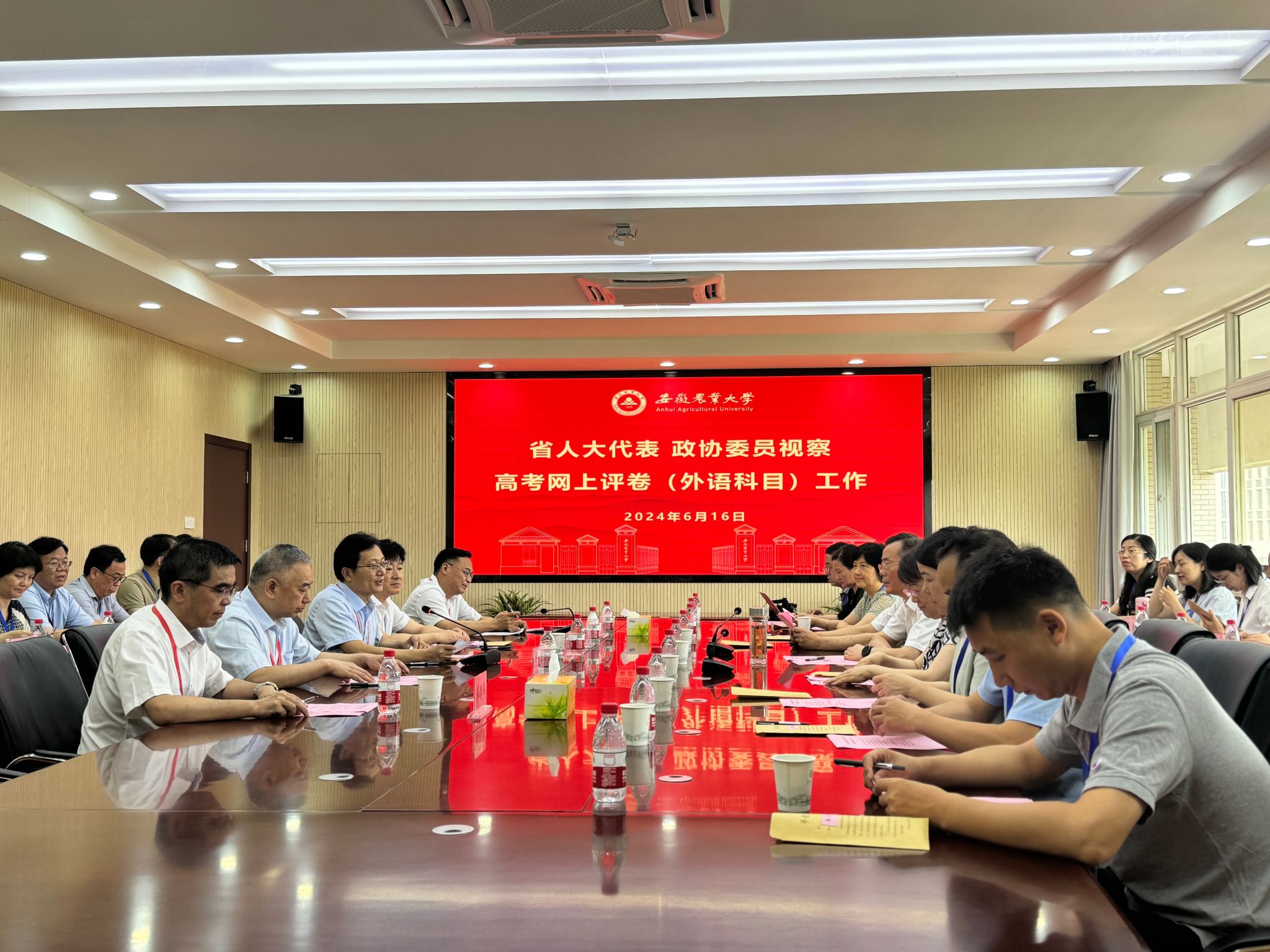 代表和委员首先听取了我校2024年高考外语网上评卷工作总体情况汇报。韩军和罗平对我校高考网评工作给予充分的肯定,对参与评卷的老师和工作人员表示衷心的感谢。
