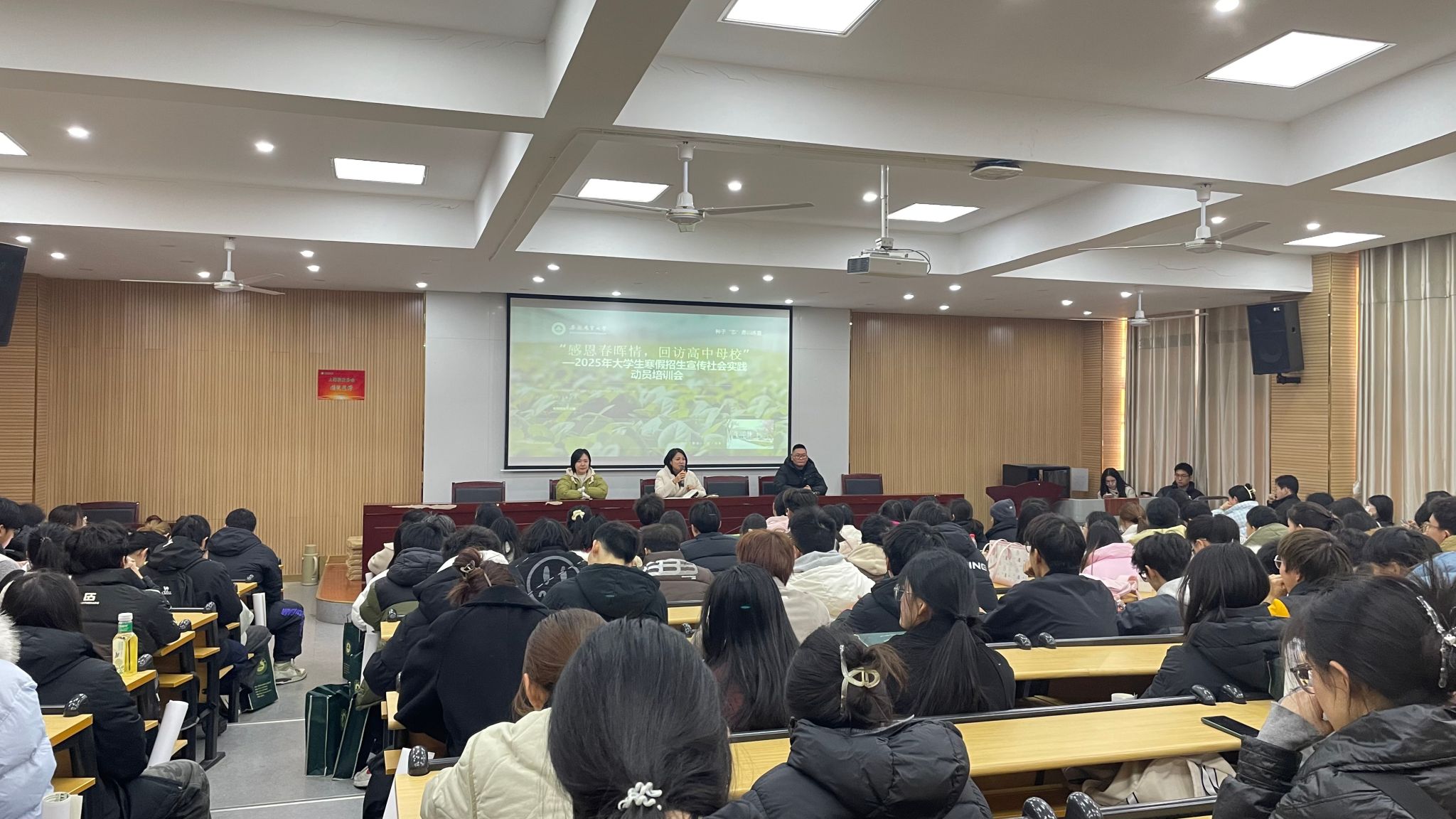 钱慧介绍了学校2025年寒假招生宣传社会实践活动的基本情况。她代表教务处向积极参加招生宣传的实践团成员表示感谢,鼓励学生们要深入了解学校概况与特色,制定详细工作方案,讲好安农故事,传播正能量;要在提升学校知名度与影响力的同时,在实践中受教育、长才干、做贡献;要确保安全第一,有针对性灵活开展宣传活动,注重宣传实效。