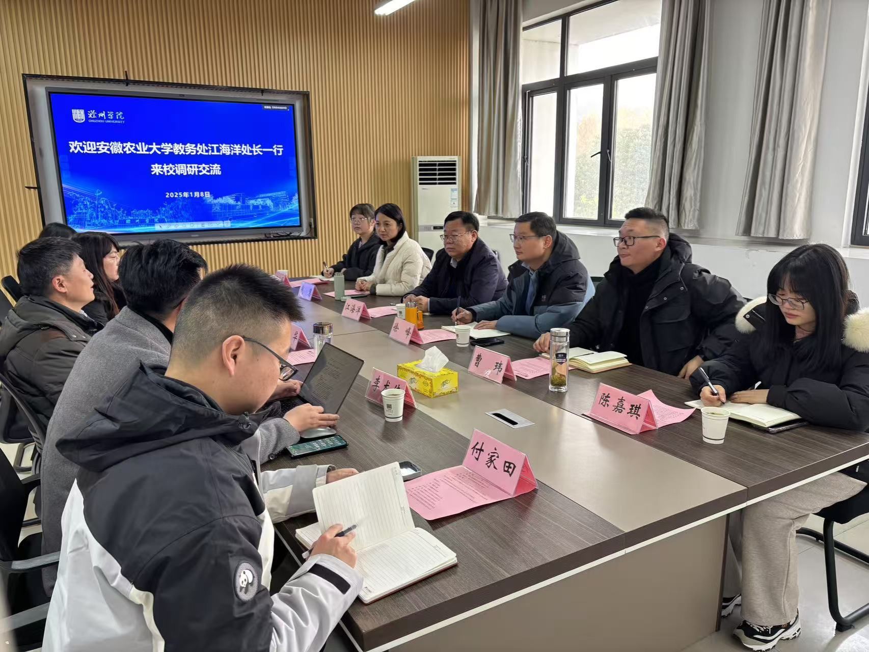 本网讯 1月8日,教务处处长江海洋一行赴滁州学院开展调研交流。滁州学院教务处处长蔡华主持调研座谈会。