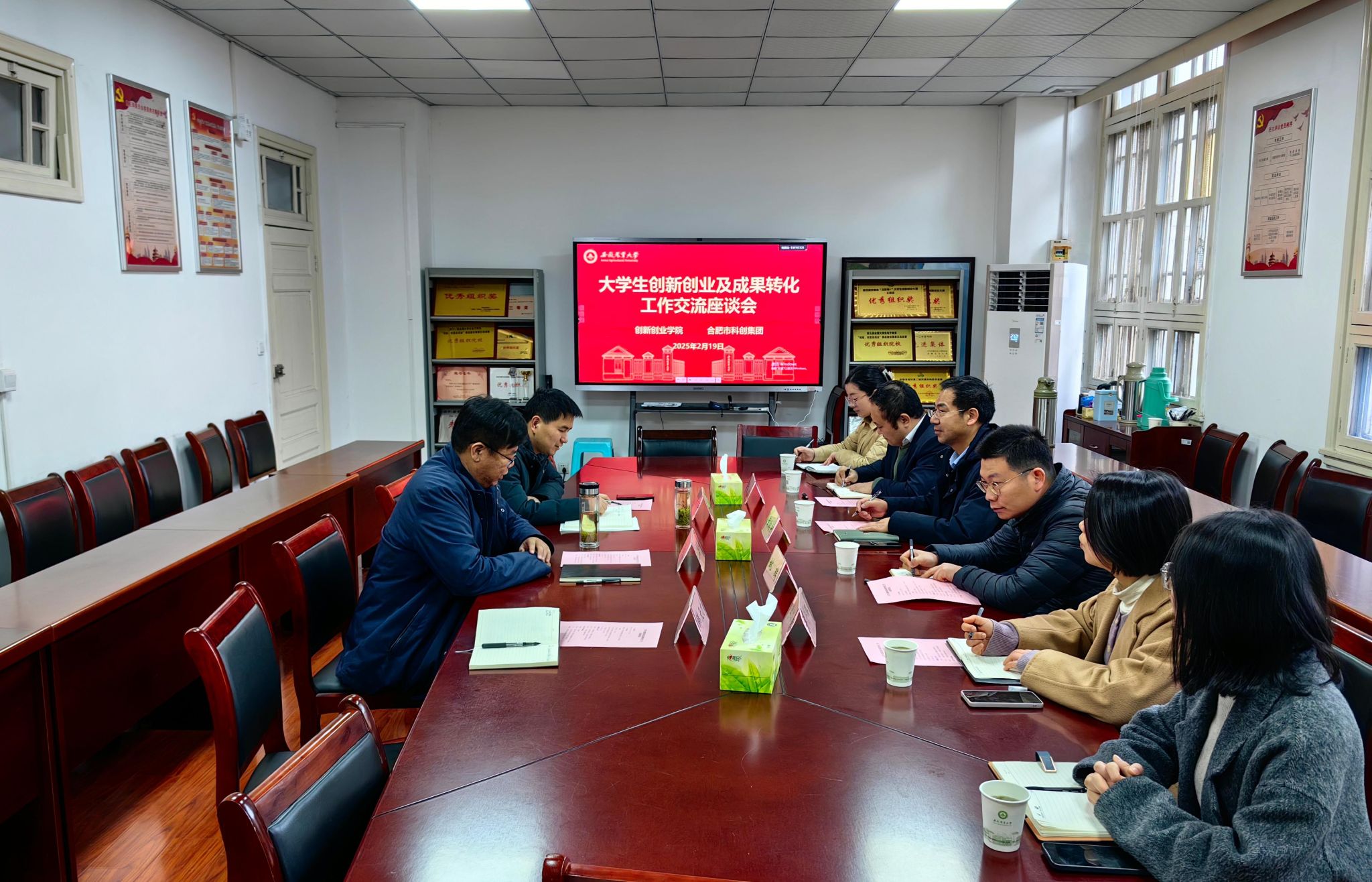 本网讯 2月19日上午,合肥市科创集团总经理黄叙新一行来校调研大学生创新创业及科技成果转化工作。创新创业学院院长江海洋、副院长张志平参加了会议。会议由江海洋主持。