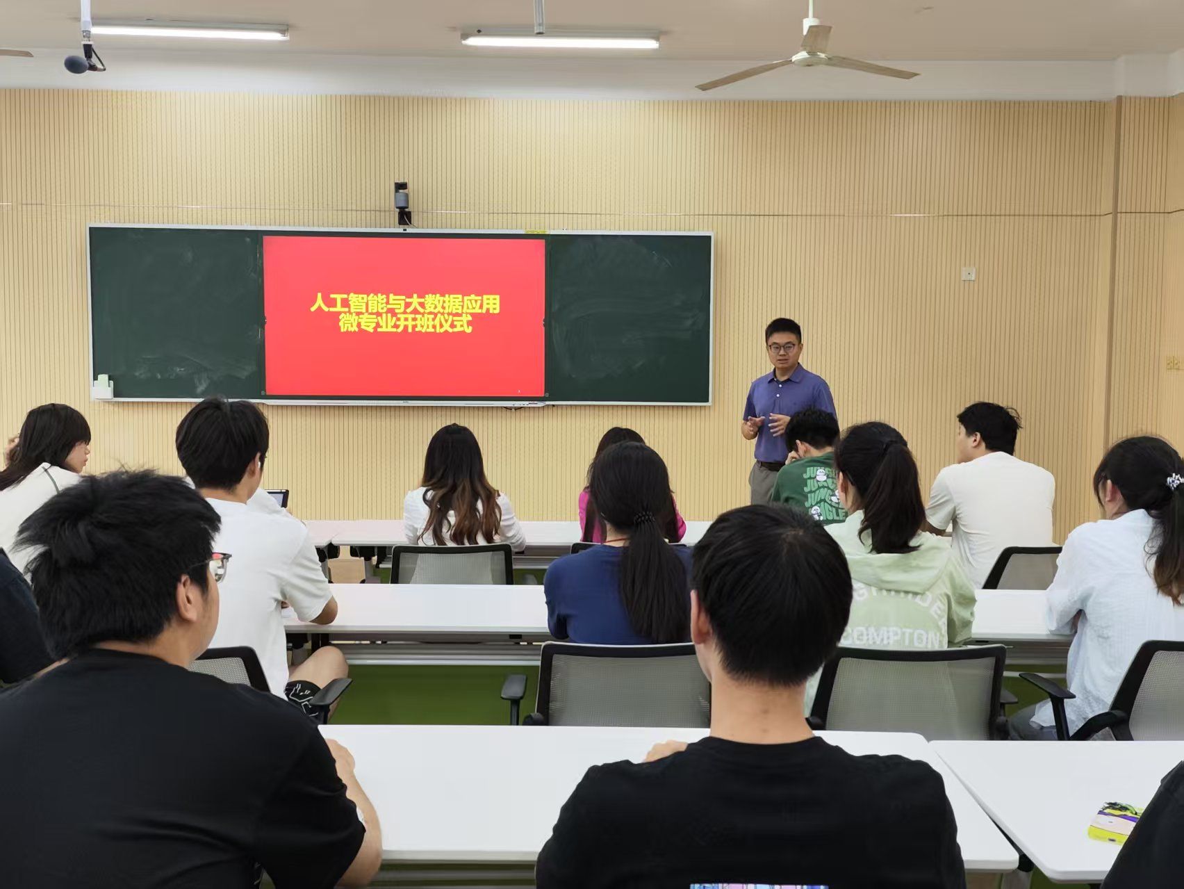 为深化产教融合,培养复合型创新人才,安徽农业大学信息与人工智能学院于6月11日举办了“人工智能与大数据应用(微专业)”第一期开班仪式。教务处处长汪钟凯、副处长房文娟、科大讯飞相关负责人、微专业骨干教师及微专业全体学生参加本次仪式,仪式由学院副院长张成堂主持。