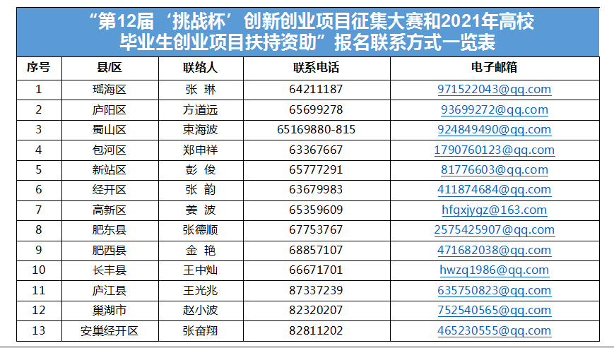 你是想要验证创新想法的在校生?你是正在积极寻求专家建议的初创团队?你是渴望关注的连续创业者……机会来了!合肥市第12届“挑战杯”创新创业项目征集大赛和 2021年高校毕业生创业项目扶持资助项目正在火热进行!(http://rsj.hefei.gov.cn/zxzx/tzgg/14772021.html 2021挑战杯创业大赛红头文件)