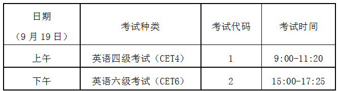 3.2020年9月19日大学英语四、六级考试时间: