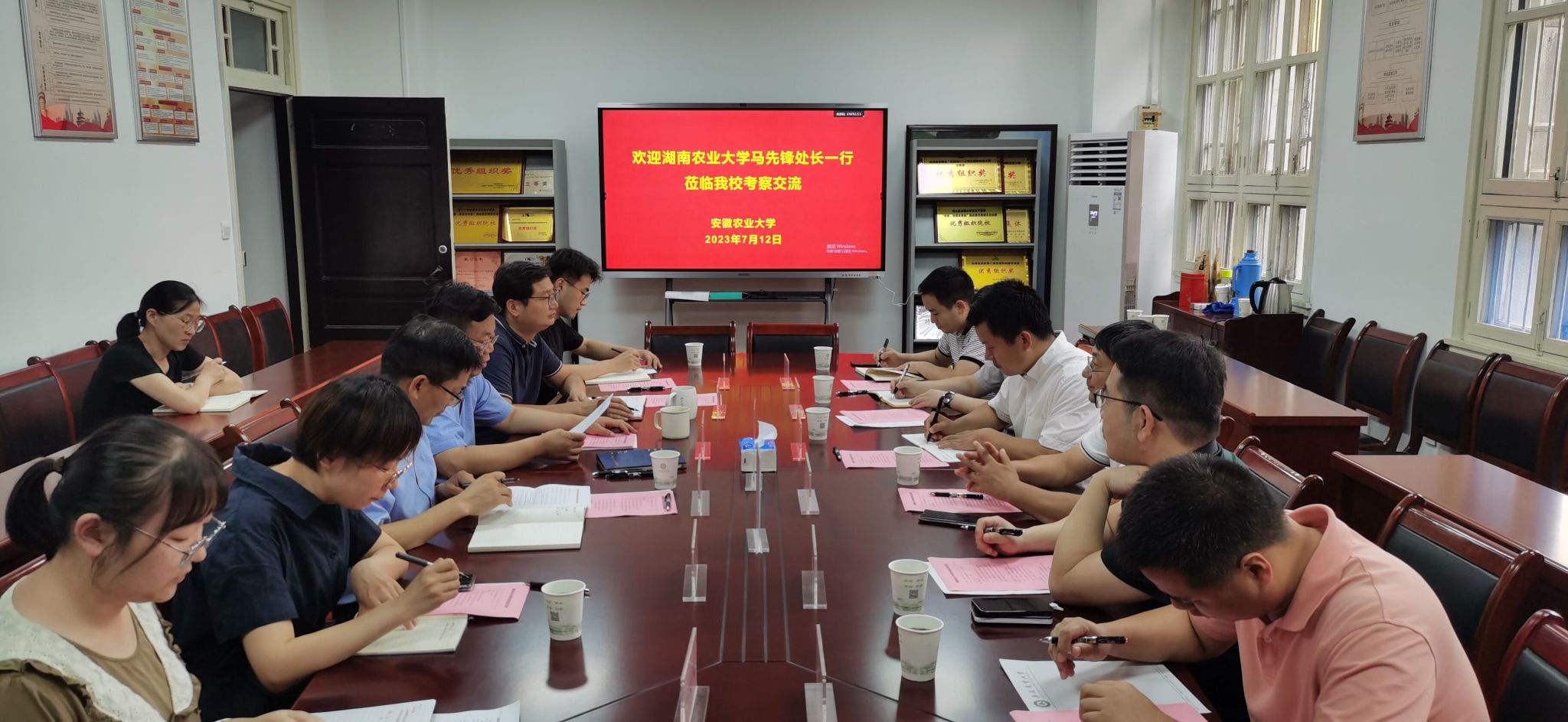 湖南农业大学来校开展调研交流本科教学工作 (本网讯)为促进农业院校间教学工作的交流,7月12日下午,湖南农业大学教务处处长马先锋与信息和网络中心一行赴我校考察交流教学管理、教学质量监控、课程考核、智慧教学平台建设等本科教学相关工作。教务处处长江海洋主持召开调研座谈会,并简要介绍了学校的办学理念和近年来在本科教学工作中取得的成绩,重点分享了课程建设、专业建设、人才培养等方面的思路和经验。湖南农业大学教务处马先锋处长介绍了湖南农业大学本科招生、教学成果、...